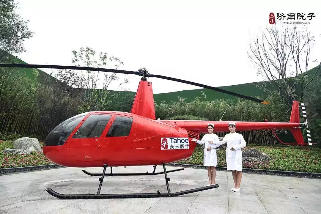 最近这一两年,泰禾发力于能够延长人的生命的医疗。泰禾最新在项目里注入的业务就是医疗。泰禾·济南院子上,一架写着“泰禾医疗”的救援直升机降落在了现场,这家直升机是泰禾专门用于医疗的“空中120”。