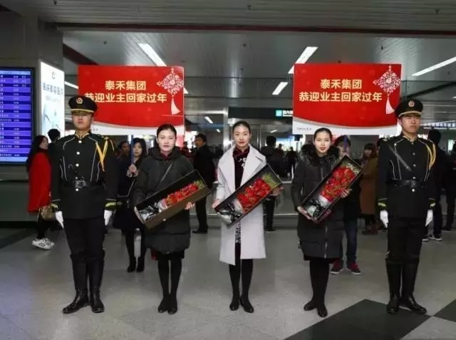 这样一个别开生面的接机队伍,在人来人往的机场中成为一道靓丽的风景线。泰禾业主从航班抵达大厅出来后,首先映入眼帘的就是这道风景线。看到泰禾接机工作人员们满脸真诚的微笑,并主动接过手中的行李箱包放后备箱内;听着一声“您好,泰禾恭迎您回家过年”的温馨问候;闻着精心赠送的一束沁人心鼻的鲜花,顿时驱散了旅途的疲惫,提前感受到了家的亲切和温暖。