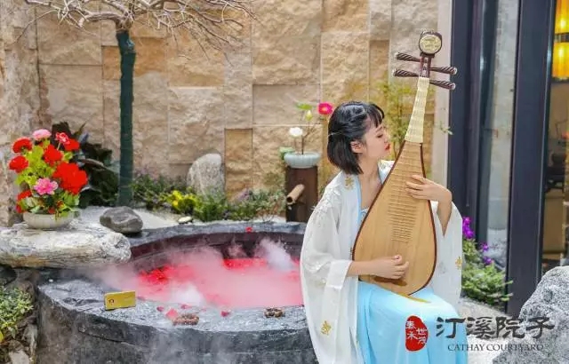 样板房开放当天有如一场大唐盛宴:门有贵妃礼迎,锦绣盛装下一笑一颦皆是尊贵宫廷礼仪;山水间园林游廊蜿蜒错落,丝绢布帘意韵款款;体验千年中药温泉养生之道,香汤泡浴,物我相融;品味精致定制温泉膳食,感受皇家膳食文化;私汤入院,盛景中唯见悠然细致的中式御养之道,无不令到访嘉宾交相赞许。