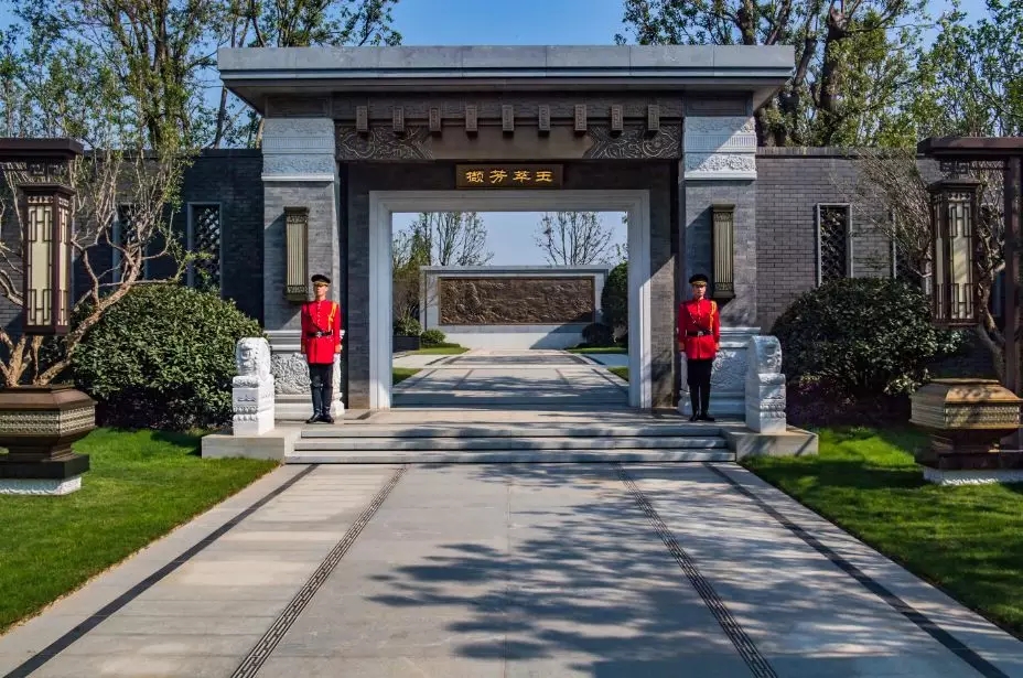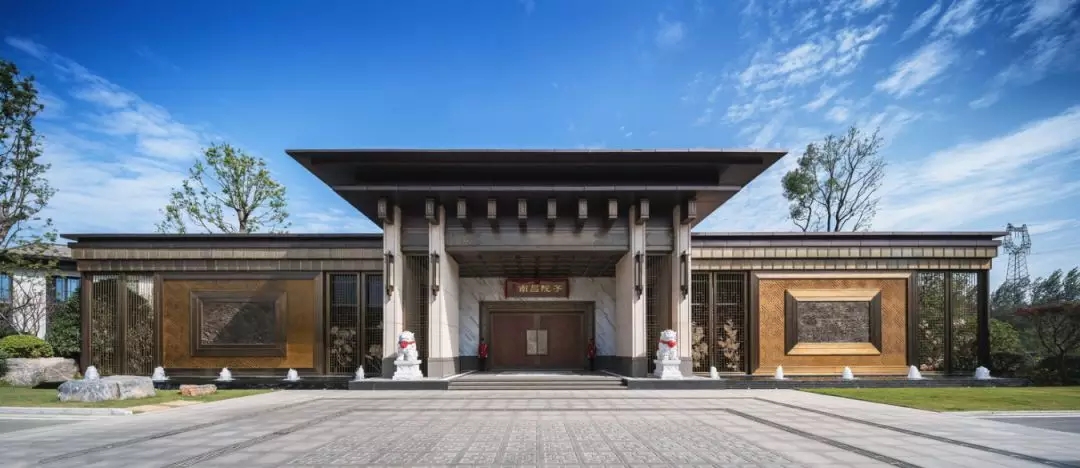 泰禾南昌院子参考皇家建筑文化,门第配有抱鼓石,定制匾额、广亮大门、古朴门钹等元素细节设计,以低调气场,宣告着豫章名仕的阶层与地位。